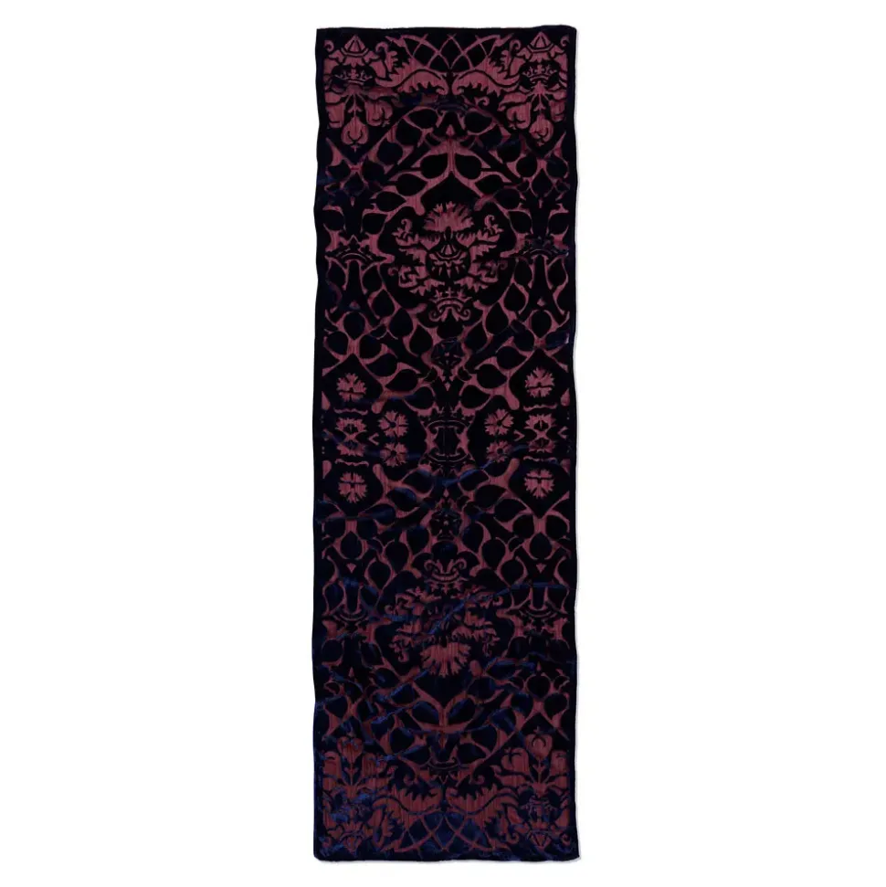 The Splendid Design On This Artful Scarf Is Borrowed From A 16Th-Century Fragment Of Damask Boasting Ovoid Forms, Garland Leaves, And A Diamond Ring Emerging From A Crown Bearing Three Pears. This Pattern—And Others Like It—Date Between The Year 1516 And The 17Th Century. As Such, It May Have Been Created For The Powerful Medici Family (The Diamond Ring Being One Of Their Heraldic Symbols) Or A Similar Household Such As The Peruzzi Or Peri, Whose Surname Could Be Referenced By The Pear. The Popularity Of The Diamond Ring Motif Suggests That It Was Appropriate For Multiple Families, Perhaps Implemented Within The Context Of A Wedding.