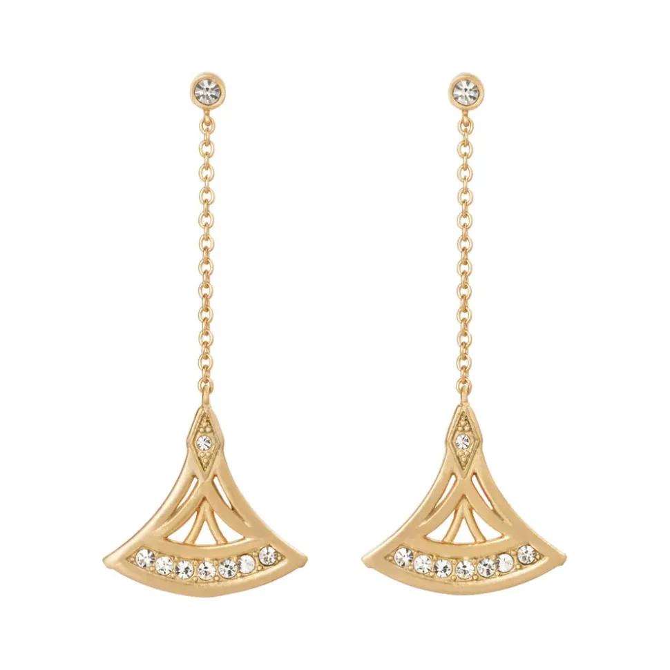 Named For French Ballet Dancer Zizi Jeanmaire, These Stylish Art Deco Drop Earrings Celebrate The Work Of Romain De Tirtoff (French, Born Russia, 1892–1990), Better Known As Erté. The Two-Tone Openwork Fan Design Features Satin-Finish 18K Gold Plate And Rhodium Plate With Swarovski® Crystals.