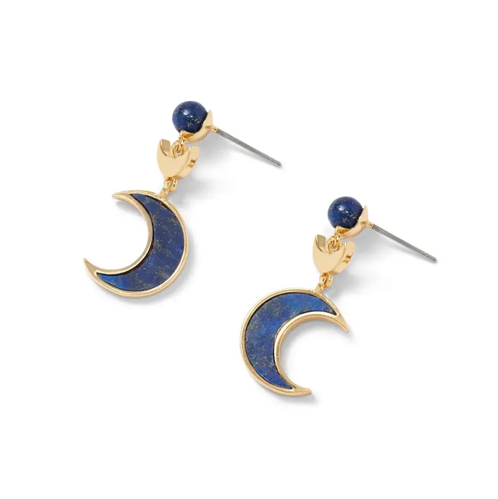 An Intricate Gold And Glass Centerpiece (11Th Century) Attributed To Syria Lends Its Crescent Motif To Our Eye-Catching Drop Earrings. The Original Boasts A Staff Bearing A Smaller Crescent; Granulated, Scrolling Forms; And A Pair Of Confronting Birds—Popular In Jewelry Crafted During The Fatimid Dynasty (909–1171)—One Of Which Still Maintains Its Luxurious Blue Cloisonné Enamel, A Luxury Item In The Byzantine World That May Have Been Exported To Syria And Egypt. Our Modern Design Refines This Ornate Object In The Museum’S Holdings, And Reinterprets The Blue Glass With Rich Lapis.