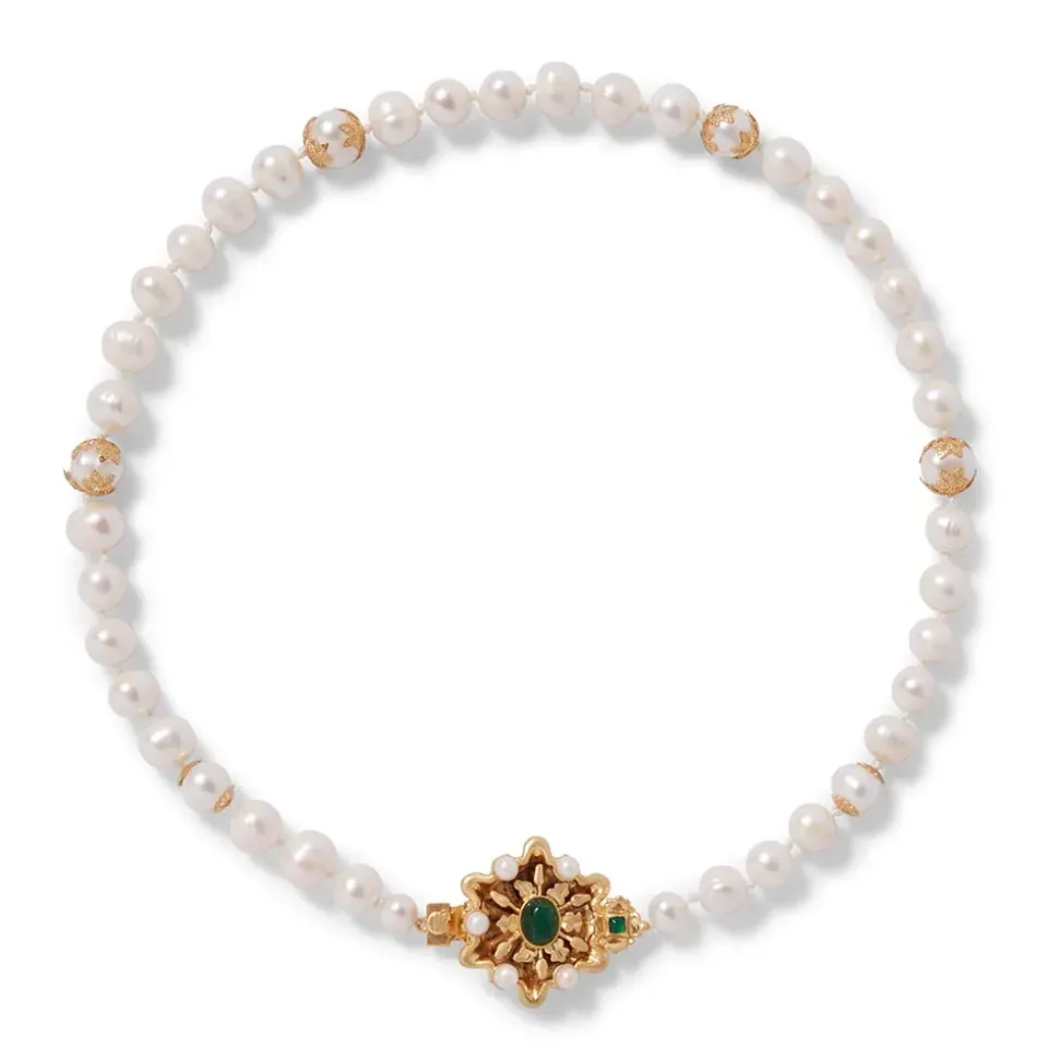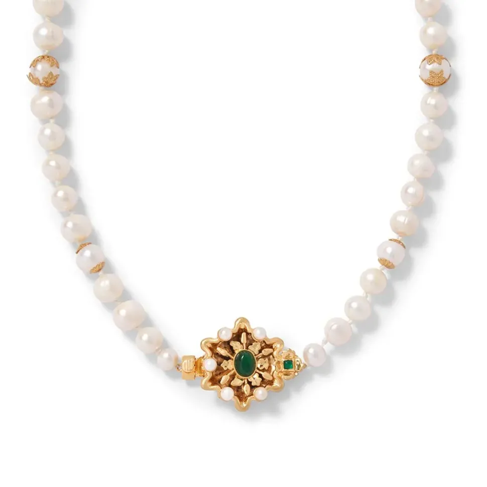 Our Eye-Catching Statement Necklace Borrows Its Design From A Mid-15Th–Century French Cluster Jewel At The Met. Made Of Gold, Pearl, And Emerald With The Word “Amor” (Latin For “Love”) Suspended In Delicate Letters Along The Base, This Exquisite Adornment May Have Been Worn As Either A Pendant Or A Brooch. Some Portraits Of Young Women Also Depict Similar Pieces Exhibited In Their Hair, Or At The Shoulder Or Neck. Such Luxurious Creations Played An Important Role In Betrothal And Marriage, Serving As Magnificent Tokens Of Affection.