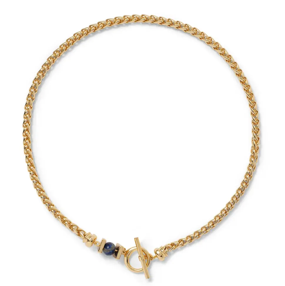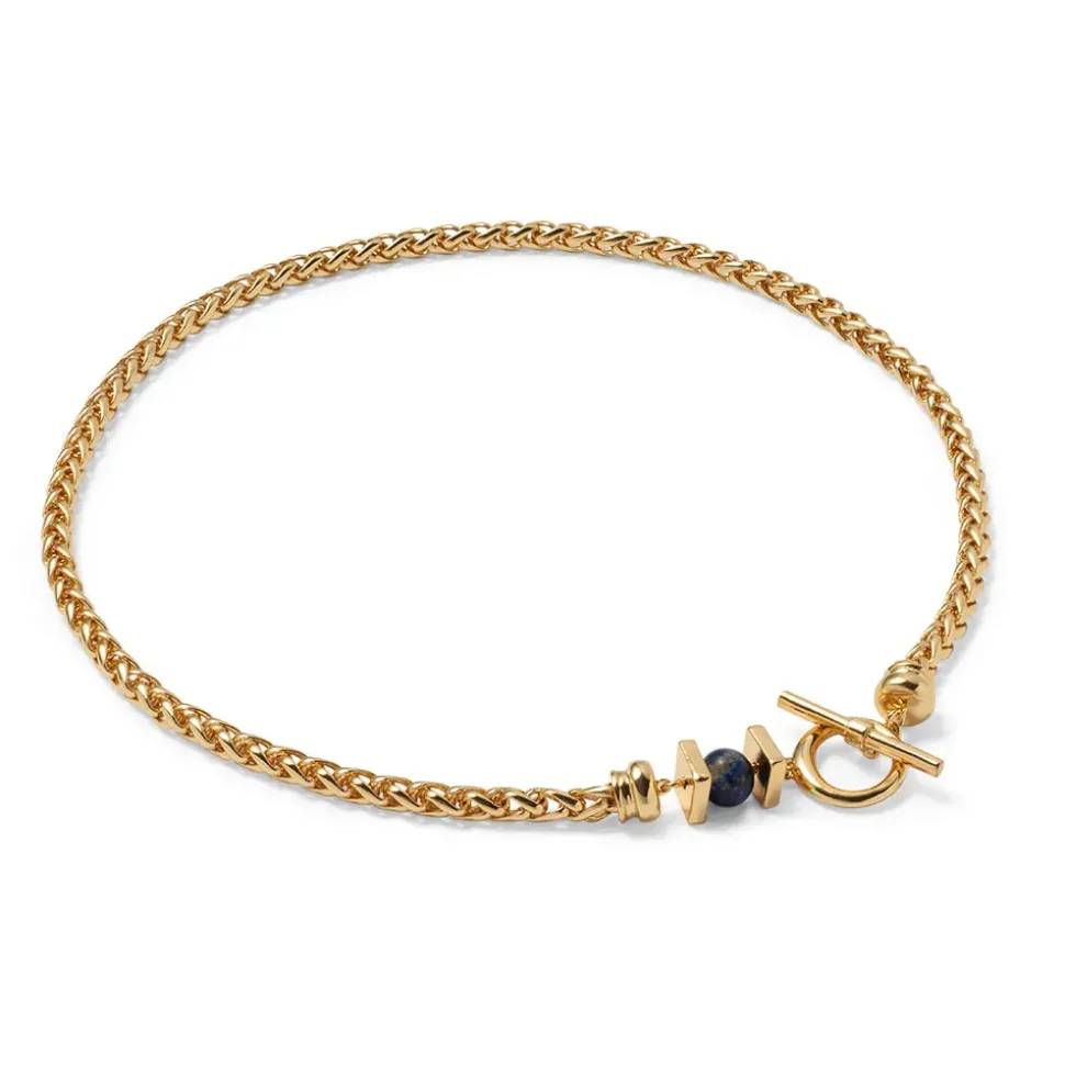 This Chic T-Bar Necklace Boasts 14K Gold Plate With Lapis. It Was Inspired By A Parure, Or Matching Set (Greek, Late Hellenistic, 1St Century B.C.), Featuring A Gold And Agate Necklace And Earrings With Large Cabochon Garnets. Our Gilded Necklace Celebrates These Original Adornments.
