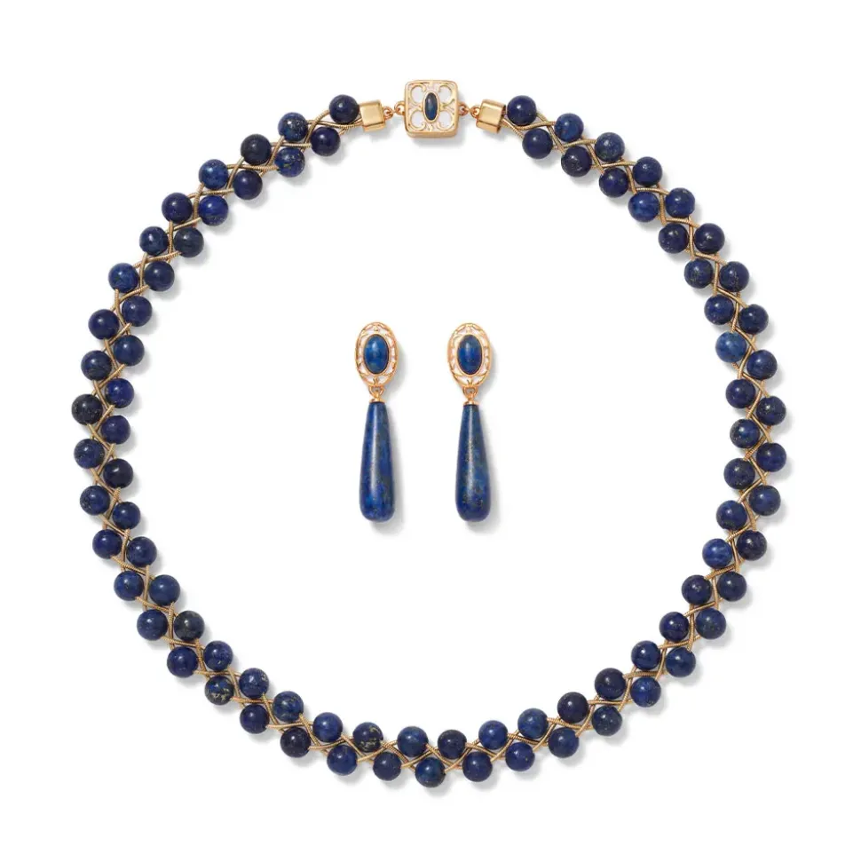 This Rich Blue Jewelry Is Inspired By A Spectacular Spanish Baldric (First Half 17Th Century), A Type Of Crossbody Belt Or Chain Often Worn To Support A Sword. Much Of The Scholarship Around Jewelry Fashions Throughout History Is Informed By Portraits In Which The Sitters Wear A Certain Style Of Adornment. An Enameled Example Very Much Like The One Displayed In The Met’S Vélez Blanco Patio, Dedicated To The Decorative Arts Of Spain Between 1450 And 1700, Is Worn Diagonally Across The Chest In An Early 17Th-Century Portrait Of A Young Man. We’Ve Honored The Blue Detailing On The Original, Featuring Champlevé Enamel, With Semiprecious Lapis And Enamel Elements.