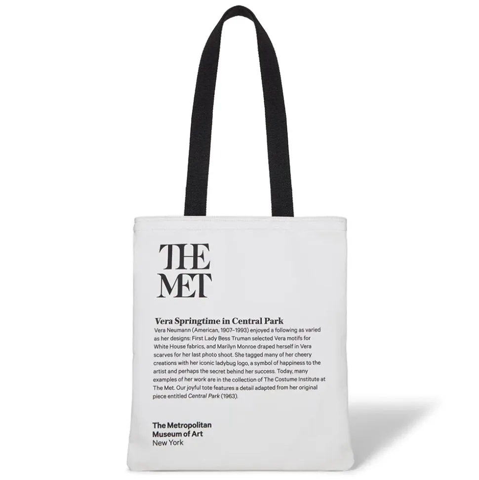 Vera Neumann (American, 1907–1993) Enjoyed A Following As Varied As Her Designs: First Lady Bess Truman Selected Vera Motifs For White House Fabrics, And Marilyn Monroe Draped Herself In Vera Scarves For Her Last Photo Shoot. She Tagged Many Of Her Cheery Creations With Her Iconic Ladybug Logo, A Symbol Of Happiness To The Artist And Perhaps The Secret Behind Her Success. Today, Many Examples Of Her Work Are In The Collection Of The Costume Institute At The Met. Our Joyful Tote Features A Detail Adapted From Her Original Piece Entitled Central Park (1963).