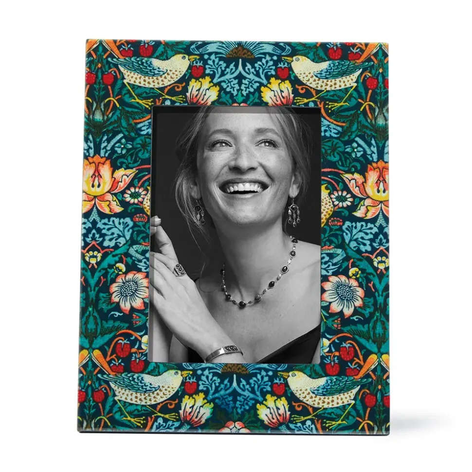 William Morris’S (British, 1834–1896) Whimsical Strawberry Thief Features On Our Delightful Lacquer Frame. Registered In 1883 And Printed Between 1917 And 1923 At Merton Abbey Tapestry Works Near Wimbledon, The Beloved Botanical Motif Was Derived From Morris’S Country Home, Kelmscott Manor, Where A Community Of Thrushes Would Relentlessly Pluck The Strawberries From His Garden.